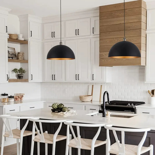 Vintage Industrial Dome Chandelier Black & Gold