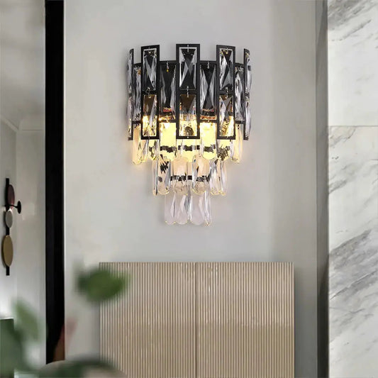 Luxury Black Crystal Wall Sconce for Bedside, Bedroom, Living