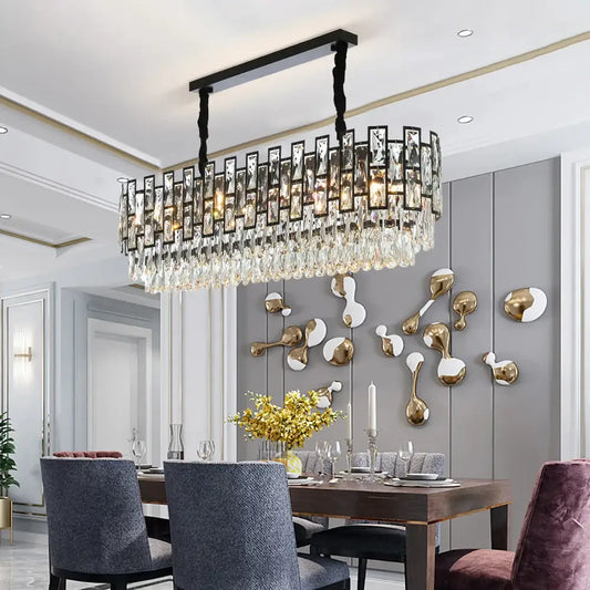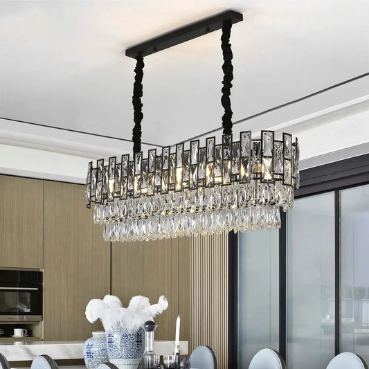 Luxury Hanging Rectangle Crystal Chandelier for Dining, Island