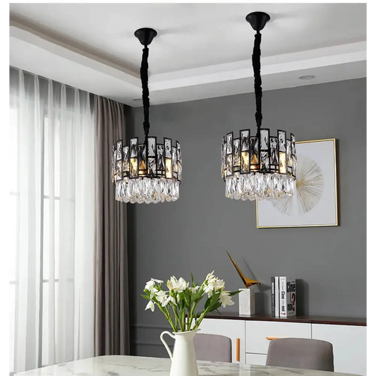 Modern Black Hanging Crystal Chandelier for Island, Dining, Bar