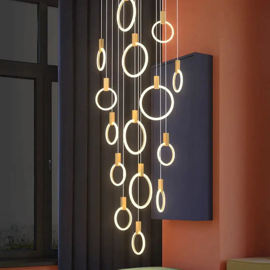 Luxuriöser goldener Hängering-Kronleuchter für Treppenhaus, Wohnzimmer, Flur
