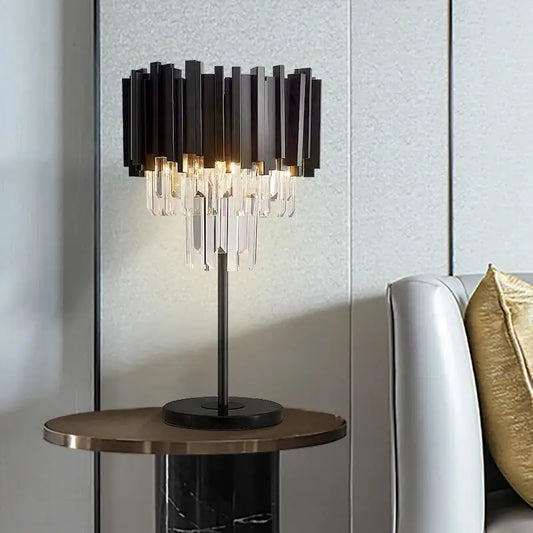 Schwarze Luxus-Kristall-Tischlampe für Schlafzimmer, Wohnzimmer, Arbeitszimmer