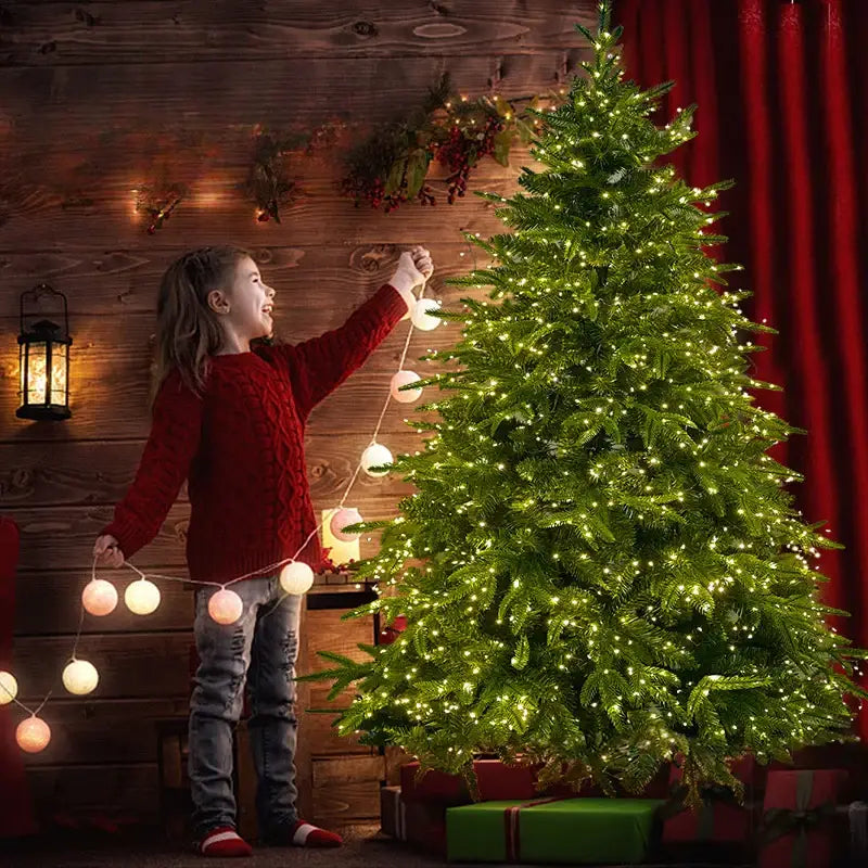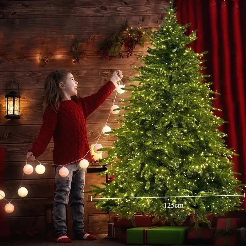 Exquisite Light Bars: Equipped with cleverly wrapped light strips around the branches, this tree glows with a bright and warm light, enhancing its festive appeal.